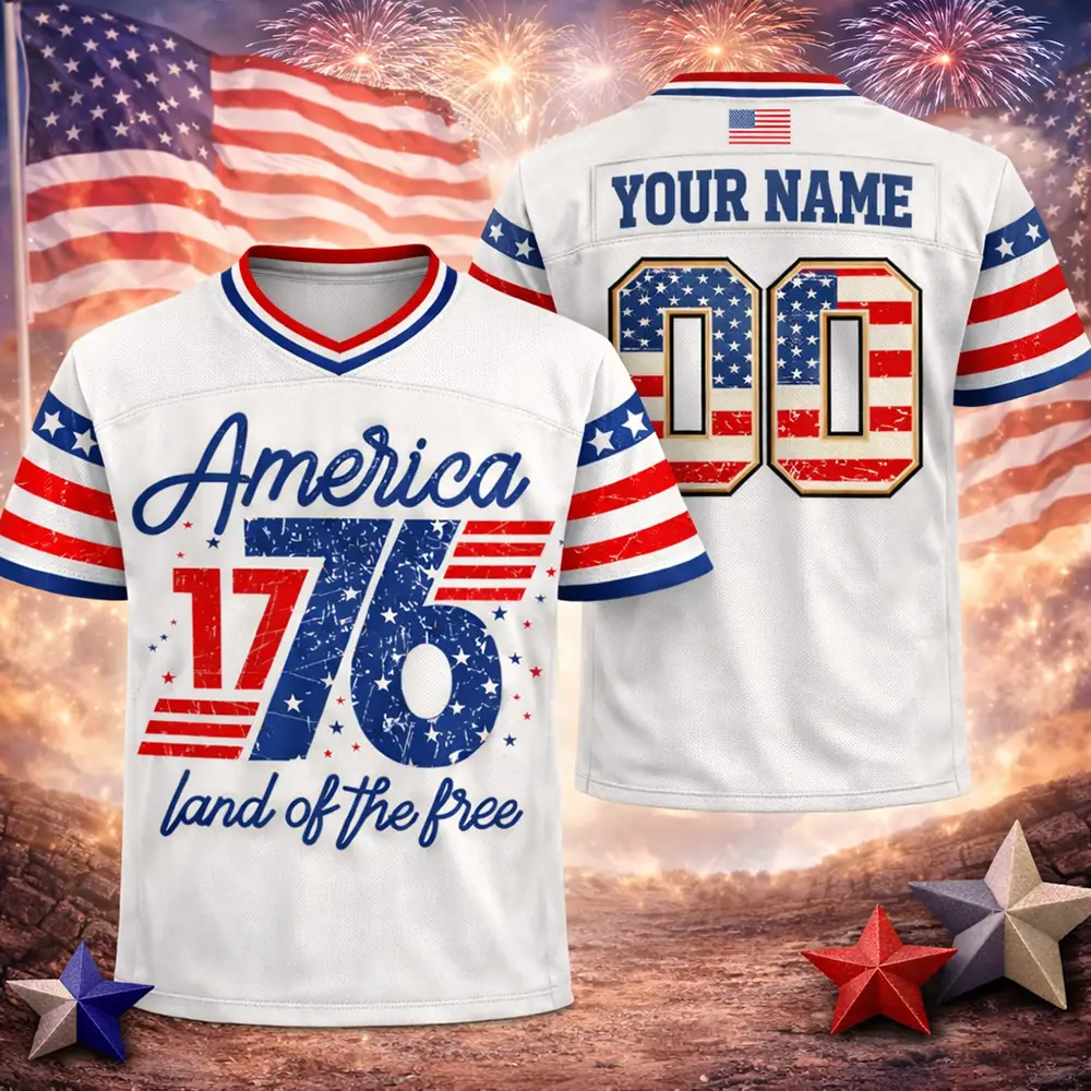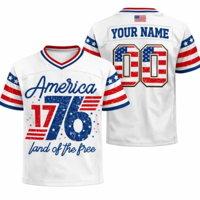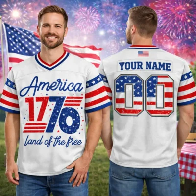 Bold patriotic style gives this 1776 America Football Jersey Patriotic 4th of July Design a strong and timeless look for the holiday season. The football jersey silhouette adds sporty energy, while the 1776 America theme reflects pride, freedom, and classic red, white, and blue spirit. It is a great choice for Independence Day celebrations, summer gatherings, fireworks nights, and festive everyday wear.