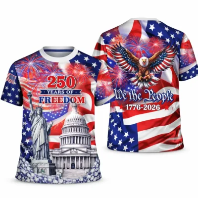 Celebrate America’s 250th anniversary in bold style with the America 250th Anniversary Patriotic Eagle 1776 2026 T-Shirt. Inspired by freedom, heritage, and national strength, this design combines a classic patriotic theme with a striking eagle graphic for a look that stands out during 4th of July celebrations and beyond.