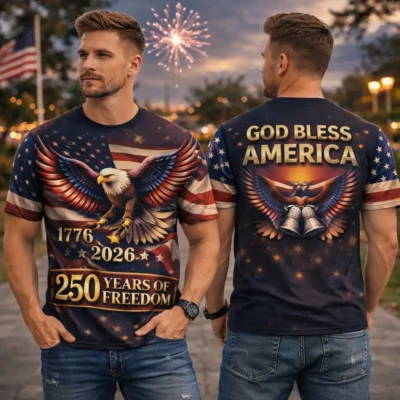 Show your love for freedom and country with the American 1776–2026 Patriotic Eagle Freedom T-Shirt. Designed to reflect strength, heritage, and American pride, this shirt stands out with its powerful eagle theme and timeless patriotic message. Perfect for 4th of July celebrations, family gatherings, and summer occasions.