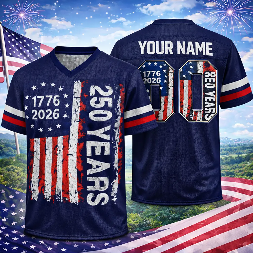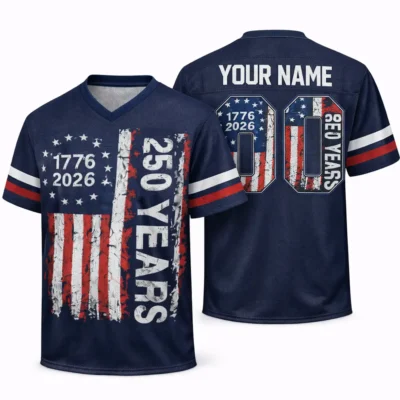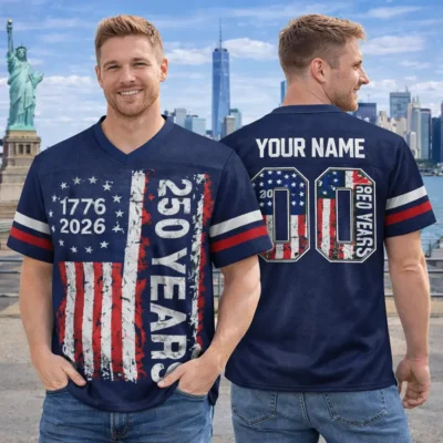 Mark 250 years of American freedom with the 1776–2026 American 250 Years of Freedom Football Jersey. Featuring a bold patriotic look and classic football style, this jersey is perfect for 4th of July parties, parades, tailgates, BBQs, and other summer celebrations. It is a great choice for anyone who wants to honor America’s history with pride and style.