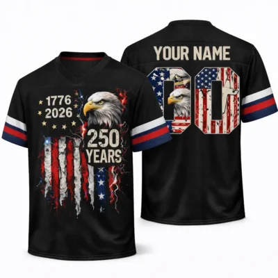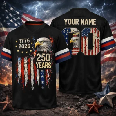 Celebrate Independence Day with bold American spirit in the American Eagle 4th of July Patriotic Football Jersey. Featuring a powerful eagle-inspired design and classic football style, this jersey is perfect for 4th of July parties, parades, tailgates, BBQs, and summer celebrations. It is a standout choice for anyone who wants to show their patriotic pride in a strong and stylish way.