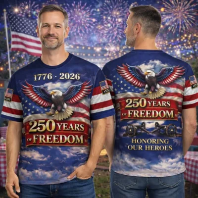 Historic American spirit shines through in this American Flag 1776–2026 Patriotic Eagle USA Design T-Shirt. The eagle and flag combination creates a powerful look that reflects freedom, courage, and pride in the nation’s journey from 1776 to 2026. Whether worn to summer events or given as a patriotic gift, this shirt delivers comfort, bold style, and meaningful USA character.