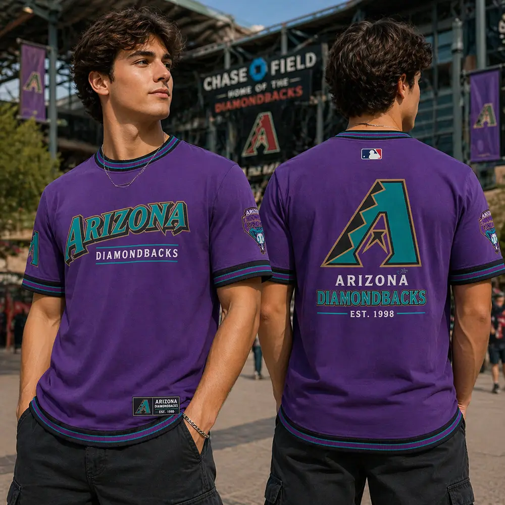 Nostalgia meets modern performance in this Arizona Diamondbacks Purple Retro Fan T-shirt, a piece designed for the ultimate “throwback” enthusiast. Whether you are at the ballpark or downtown, the iconic purple colorway ensures you stand out as a dedicated supporter of the desert’s team. It is an inspired way to back the D-backs, combining a legendary sports aesthetic with the everyday comfort of a premium graphic T-shirt.