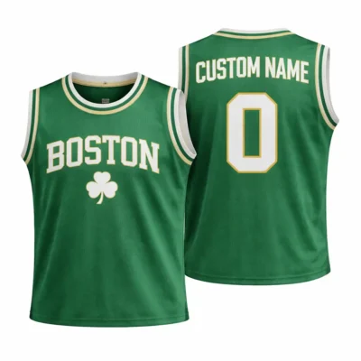 This custom Boston basketball jersey blends classic team-inspired style with personal detail. The front keeps the look bold and recognizable with Boston text and a shamrock accent, while the back gives you space to add your own name and number. The green colorway with white and gold trim delivers a fresh athletic look that works well for sports events, casual wear, or as a thoughtful personalized gift.
