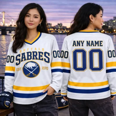 Show your team pride with this Buffalo hockey jersey, designed for fans who love classic NHL style. Featuring custom name and number personalization on the back, bold team-inspired colors, and a comfortable fit, this jersey is perfect for game day, casual wear, or fan collections. It also makes a thoughtful gift for any Buffalo hockey supporter.