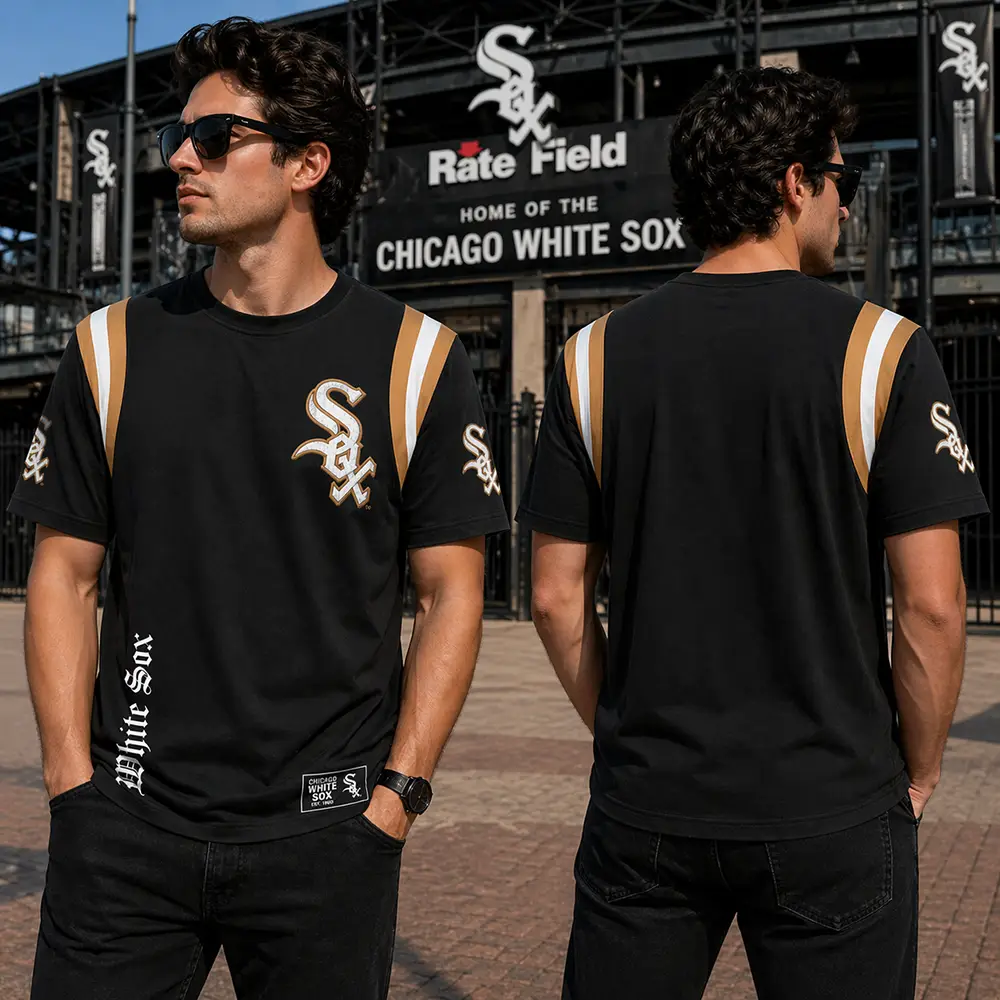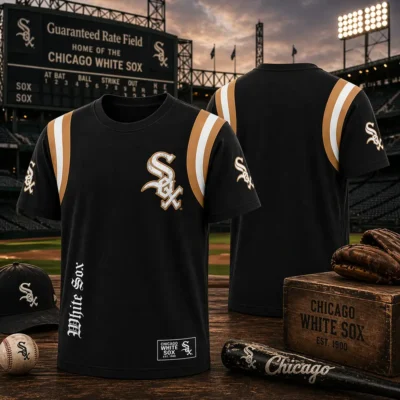 Revisit the peak of 1990s stadium fashion with this Chicago White Sox Vintage Majestic Varsity Style T-shirt, designed for the fan who craves that authentic dugout energy. This piece masterfully recreates the look of a heavy wool-and-leather letterman jacket using high-definition 3D textures, featuring the iconic “Sox” old-english script. It is a brilliant way to carry the weight of team heritage without the heat, all in one breathable T-shirt.