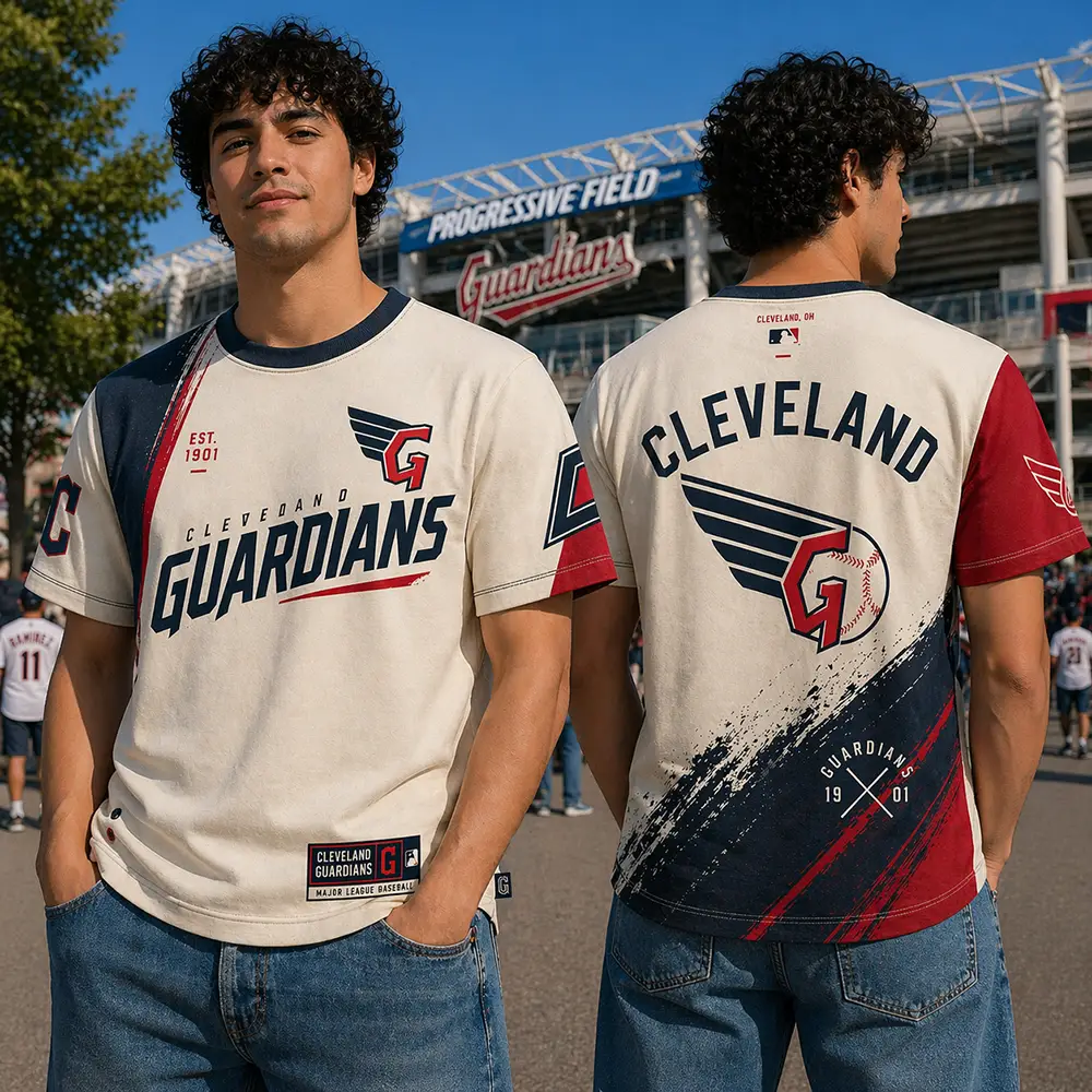 Celebrate the architectural legends of the Hope Memorial Bridge with this Cleveland Baseball Vintage Retro Guardian Sleeve Print T-shirt. This design pays homage to the city’s iconic stone sentinels, featuring a classic chest graphic paired with high-definition “Guardian of Traffic” illustrations running down the sleeves. It is a sophisticated way to merge civic pride with a timeless sports aesthetic in a premium T-shirt.