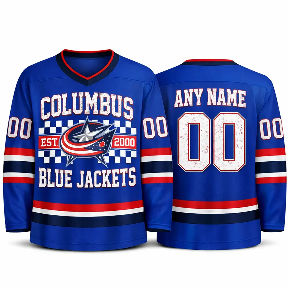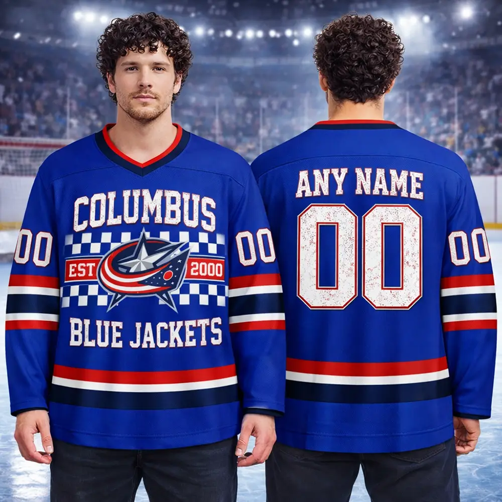 Show your hockey passion with this Columbus Blue Jackets fan jersey, designed for comfort, style, and team spirit. With personalized name and number options, vintage-inspired front graphics, and a standout blue, red, and white color scheme, this jersey makes a great addition to any fan wardrobe. Perfect for everyday wear, sports nights, and special gifts for hockey lovers.