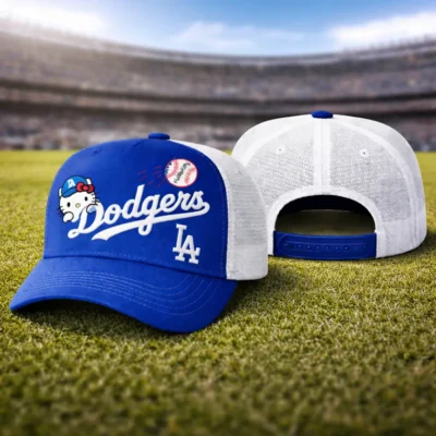 Cute Hello Kitty Dodgers Trucker Hat is the perfect blend of sporty style and playful charm. Featuring a bold blue and white colorway, classic Dodgers script, adorable Hello Kitty graphic, breathable mesh back, and adjustable snapback closure, this hat is great for everyday wear, game day outfits, streetwear looks, or as a fun gift for Dodgers and Hello Kitty fans.