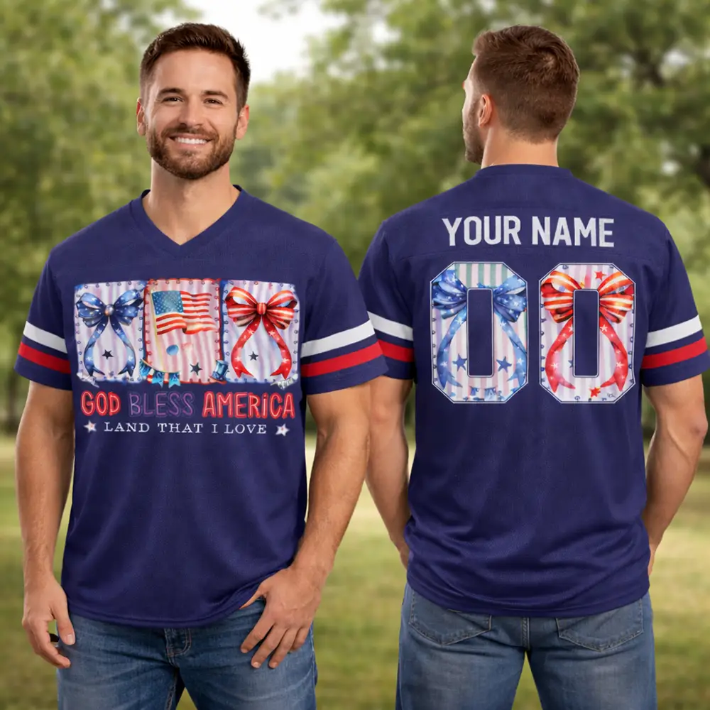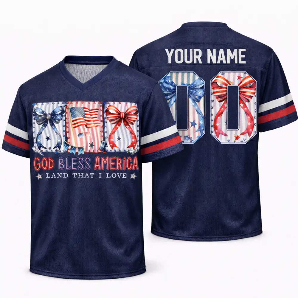 God Bless America Patriotic Football Jersey Fourth of July American Flag Design