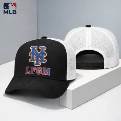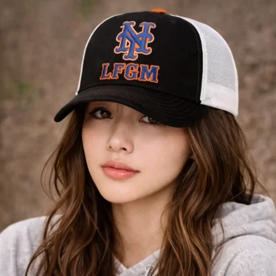 LFGM Crew New York Baseball MLB Trucker Hat features a bold black and white colorway with an embroidered New York-inspired logo and LFGM lettering, breathable mesh back panels, and an adjustable snapback closure for a comfortable fit. This stylish baseball cap is perfect for game day, casual outfits, outdoor wear, or as a great gift for New York baseball fans.