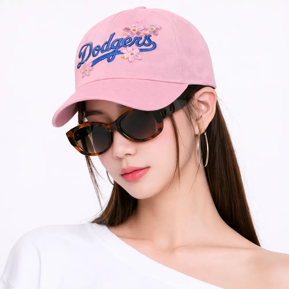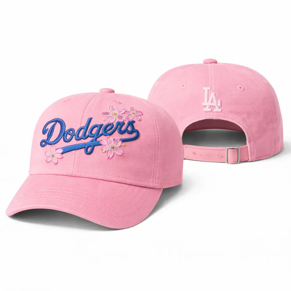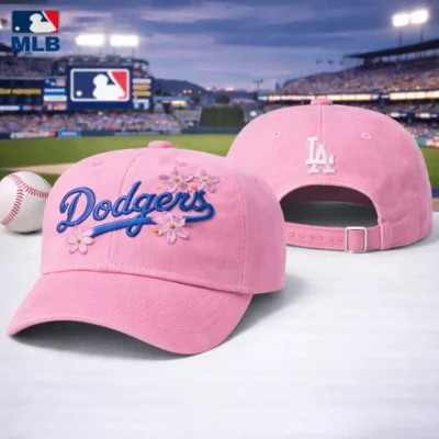Los Angeles Dodgers Pink Floral Dad Hat features a soft pink colorway with bold Dodgers script embroidery, delicate floral accents, and a classic LA logo detail on the back for a sweet and stylish finish. Designed with a curved brim and adjustable strap closure, this charming baseball cap is perfect for everyday wear, casual outfits, outdoor activities, or as a thoughtful gift for Los Angeles Dodgers fans.