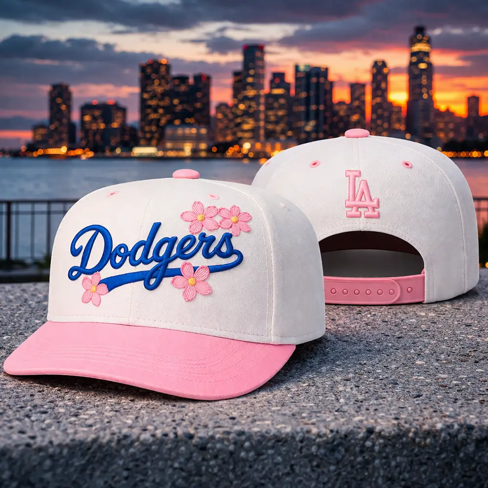 Designed in a fresh white and pink colorway, this eye-catching cap features bold Dodgers script embroidery, delicate floral accents, and classic LA logo detailing on the back. The flat brim and adjustable snapback closure provide a comfortable fit, making it a stylish pick for casual outfits, game day looks, outdoor wear, or as a sweet gift for Los Angeles Dodgers fans.