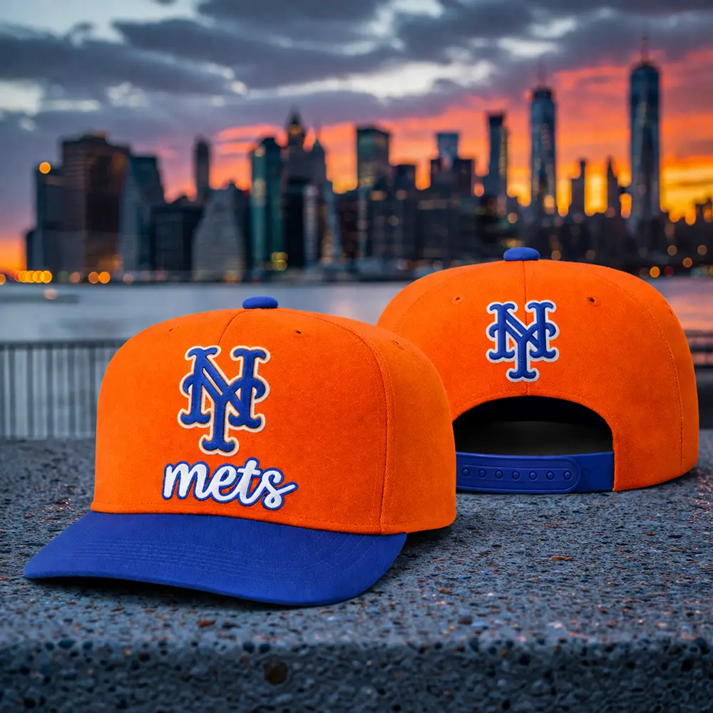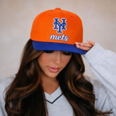Featuring a vibrant orange and blue colorway, this classic snapback cap highlights embroidered Mets script lettering, iconic NY logo details, and a flat brim for a bold sporty finish. The adjustable snapback closure offers a secure and comfortable fit, making it a great option for game day, casual streetwear, outdoor wear, or as a gift for New York Mets fans.