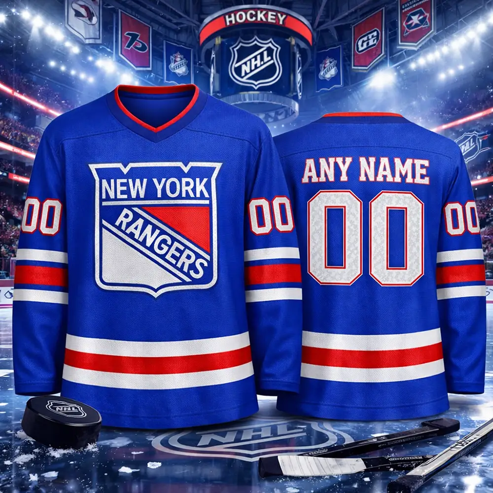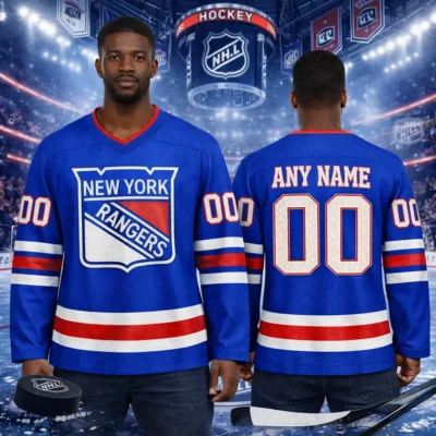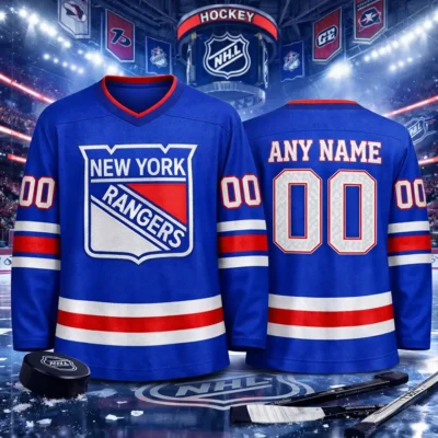 Celebrate classic hockey style with this New York Rangers vintage hockey jersey. Designed with a bold retro-inspired look and customizable name and number on the back, this jersey is perfect for dedicated fans who want a personalized game-day outfit. Ideal for hockey nights, casual wear, fan collections, or gifting, it combines timeless team spirit with everyday comfort.