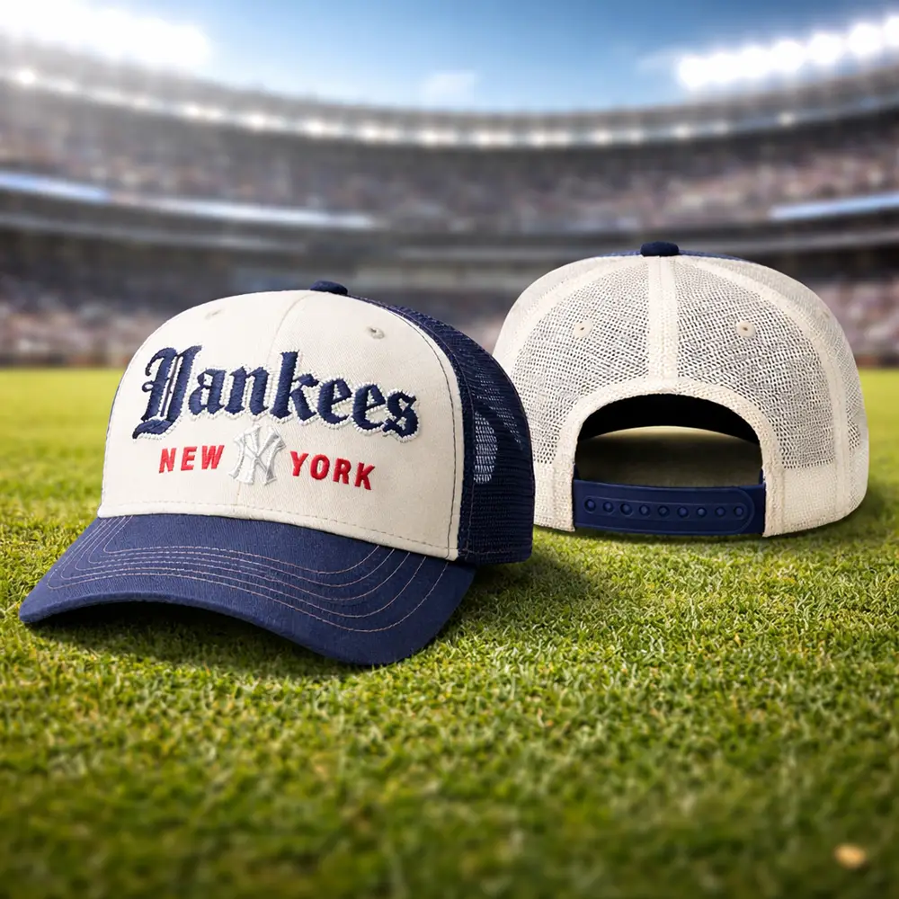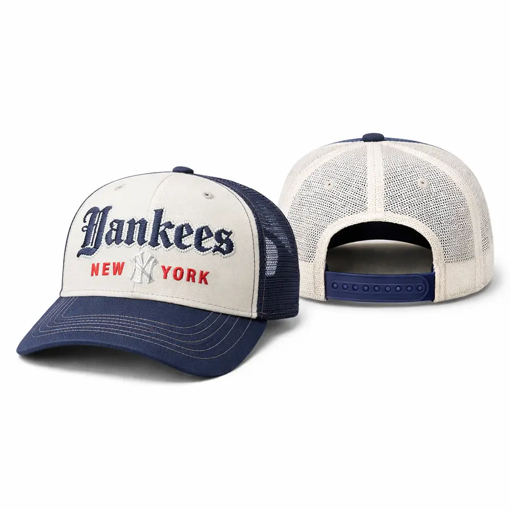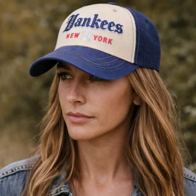 This New York Yankees vintage trucker cap is a standout accessory for baseball fans and streetwear lovers alike. Featuring Old English inspired embroidery, a contrasting navy brim, and ventilated mesh back panels, it delivers both style and comfort in one versatile design. The adjustable snapback makes it easy to wear, while the retro look pairs well with everyday outfits, sportswear, and fan collections. Whether you are heading to a game, going out casually, or looking for a gift for a Yankees supporter, this cap makes a strong and stylish choice.