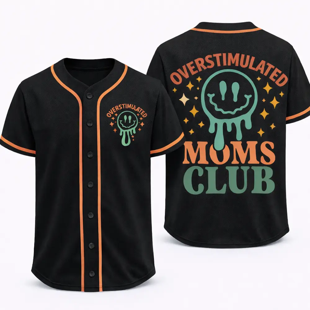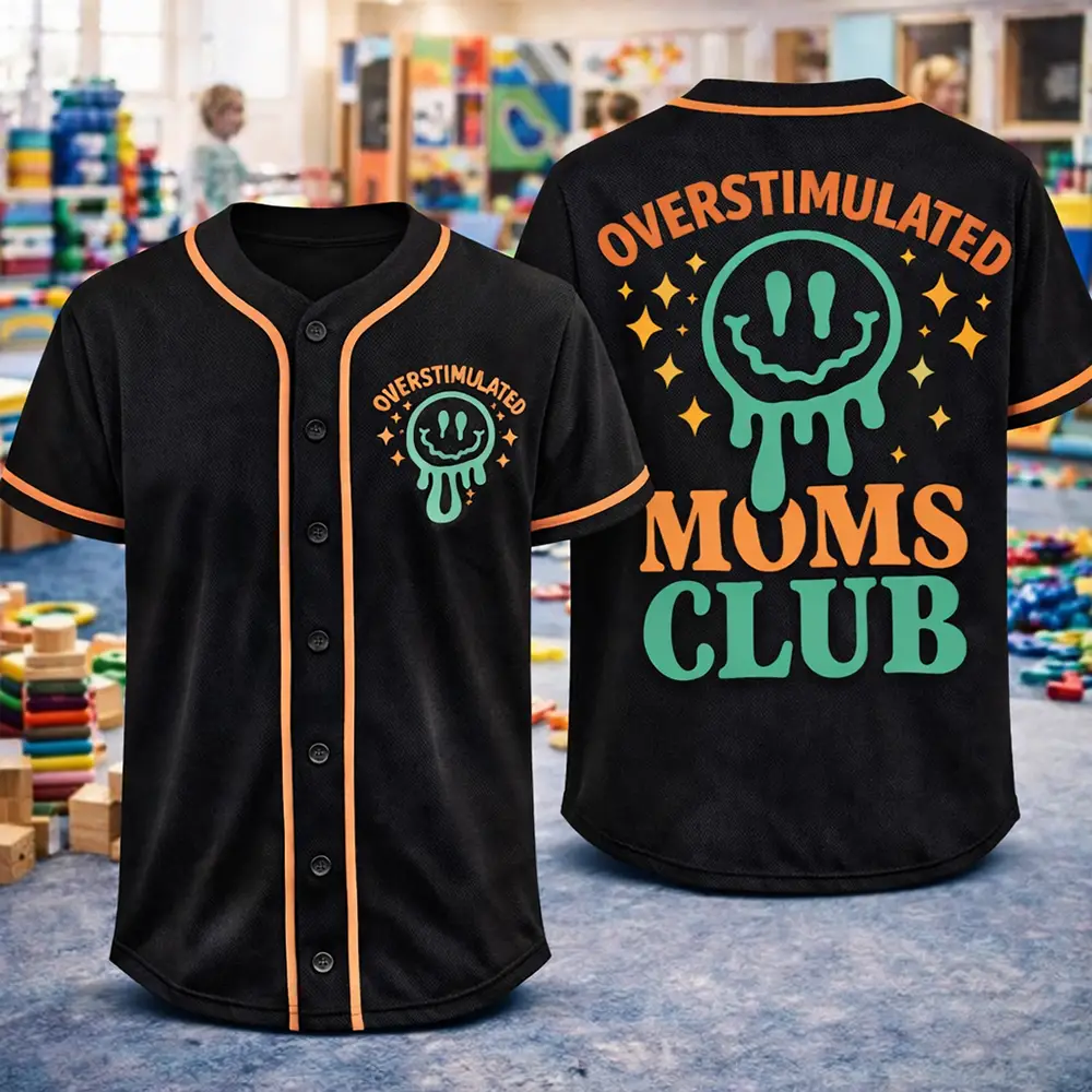 Overstimulated Mom’s Club Baseball Jersey Funny Mama Style