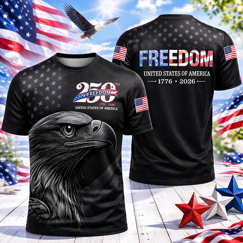 Freedom, heritage, and bold American style come together in this Patriotic Eagle 3D USA 250th Anniversary 1776–2026 T-Shirt. Made for those who love standout patriotic fashion, this design is perfect for Fourth of July events, summer outings, and celebrating an important chapter in American history. With its strong eagle artwork and anniversary theme, it is a memorable addition to any USA-inspired wardrobe.