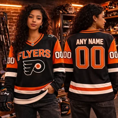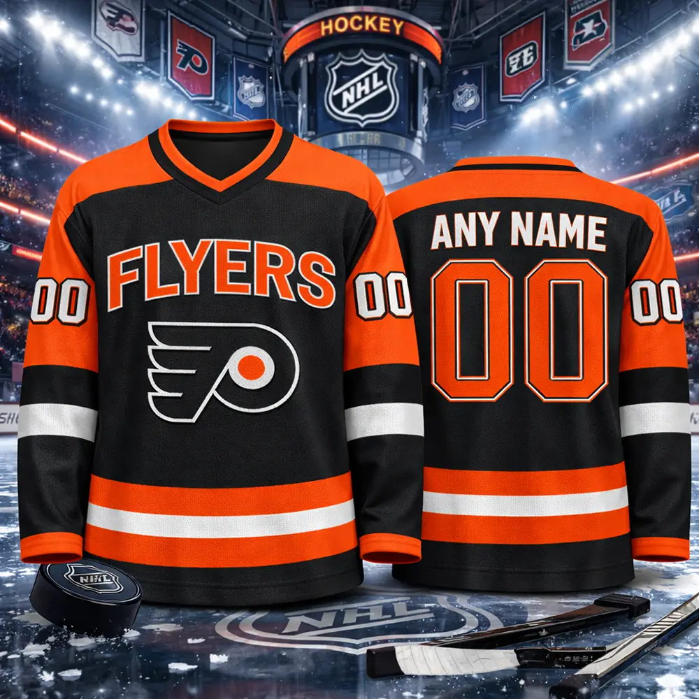 Celebrate classic hockey style with this Vintage 1990s Philadelphia Flyers NHL Hockey Jersey. Featuring bold black and orange team colors, a retro-inspired design, and customizable name and number on the back, this jersey is perfect for loyal Flyers fans. It is a great choice for game day, casual wear, fan collections, or as a unique gift for any hockey lover.