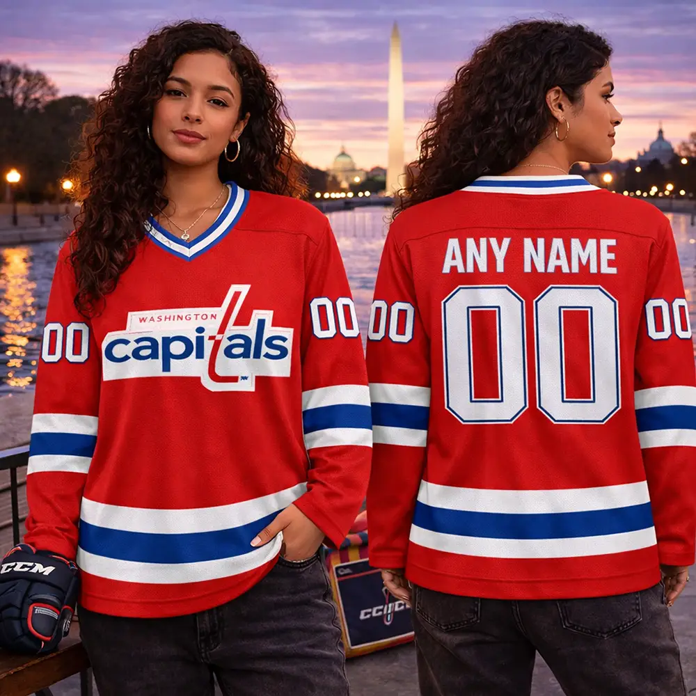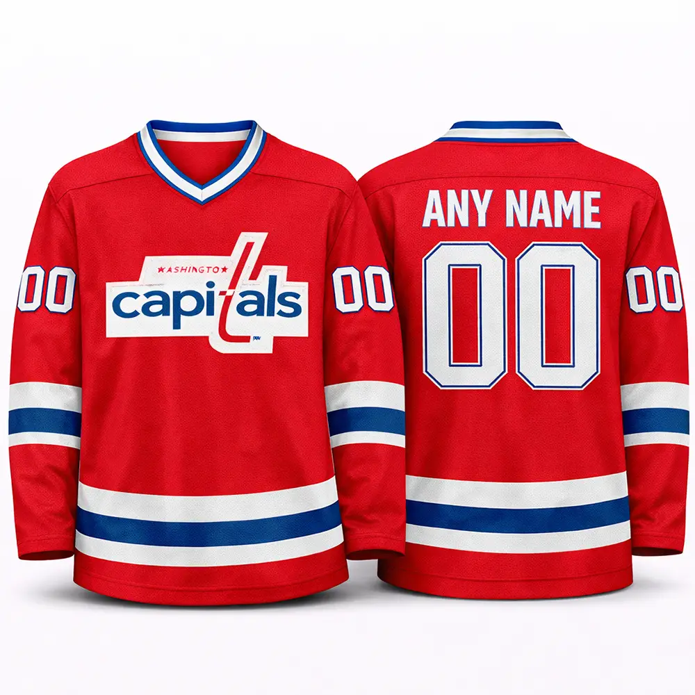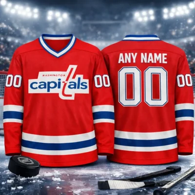 Bring back classic hockey style with this Vintage 90s Washington Capitals Hockey Jersey. Featuring a bold retro-inspired design, iconic red, white, and blue colors, and customizable name and number on the back, this jersey is perfect for loyal Capitals fans. It is a great choice for game day, casual wear, fan collections, or as a unique gift for any hockey lover.