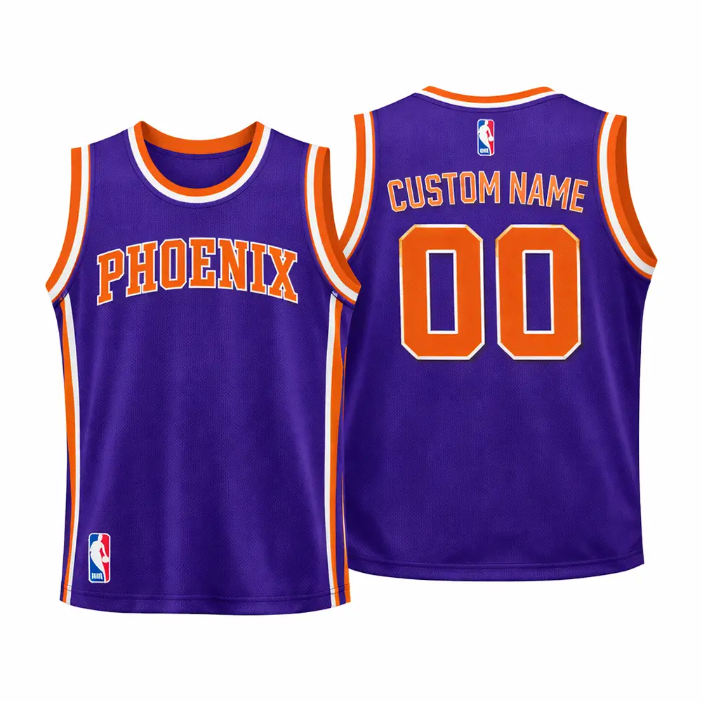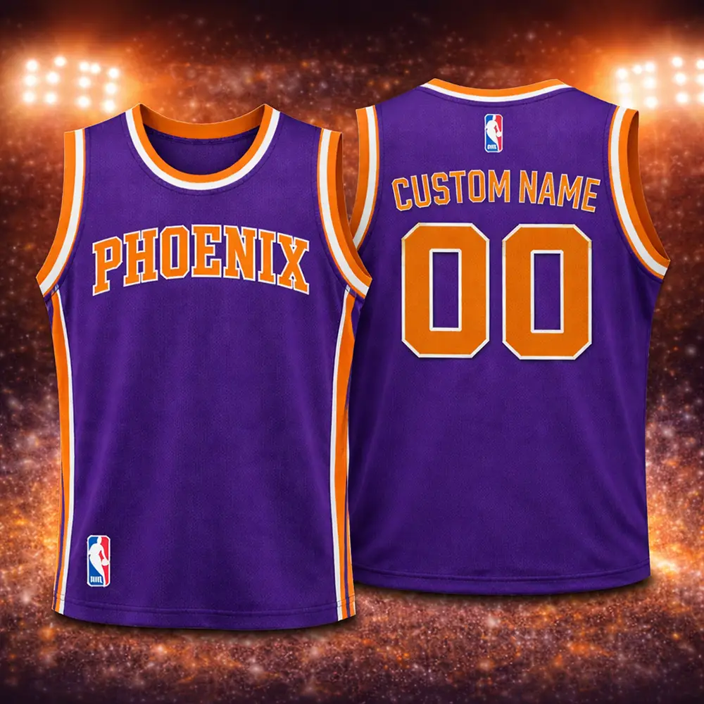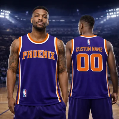 The Phoenix Suns Vintage NBA Basketball Purple Jersey is a standout piece for basketball fans and streetwear lovers alike. Designed in the team’s signature purple color with bold orange and white trim, this jersey delivers a classic retro basketball look with modern comfort. It is lightweight, breathable, and easy to style, making it great for sports, casual outings, or коллекcting NBA-inspired apparel.