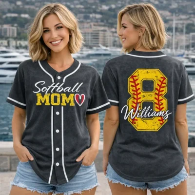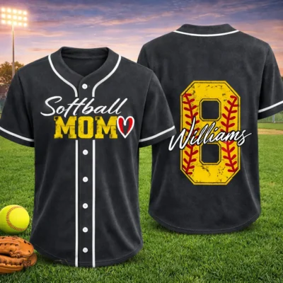Celebrate every game day in style with this Softball Mom Jersey Custom Name Number Game Day Outfit, designed for proud moms who love supporting their favorite player. Featuring personalized name and number details, this jersey adds a special touch to softball season while keeping a sporty and stylish look. It is a great choice for tournaments, team events, and everyday fan wear.