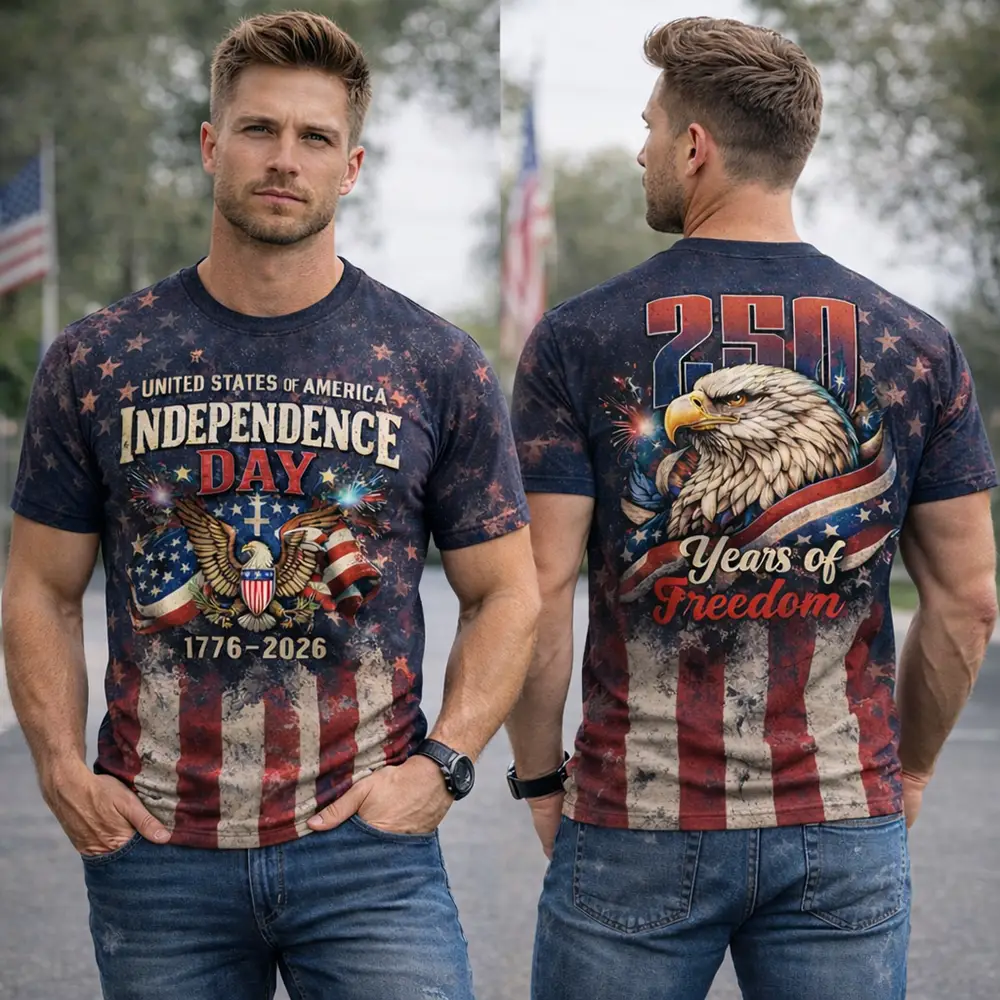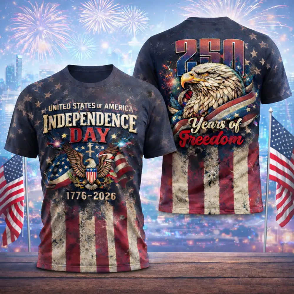 Honor America’s 250th anniversary in standout style with the USA 250th Anniversary American Patriotic 3D T-Shirt. With its strong patriotic theme and vibrant 3D design, this shirt is made for celebrating freedom, heritage, and national pride. Perfect for holiday parties, parades, cookouts, and everyday patriotic wear.
