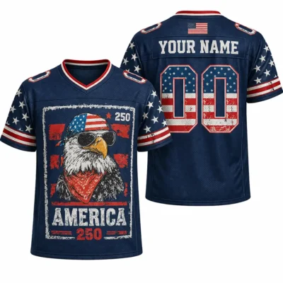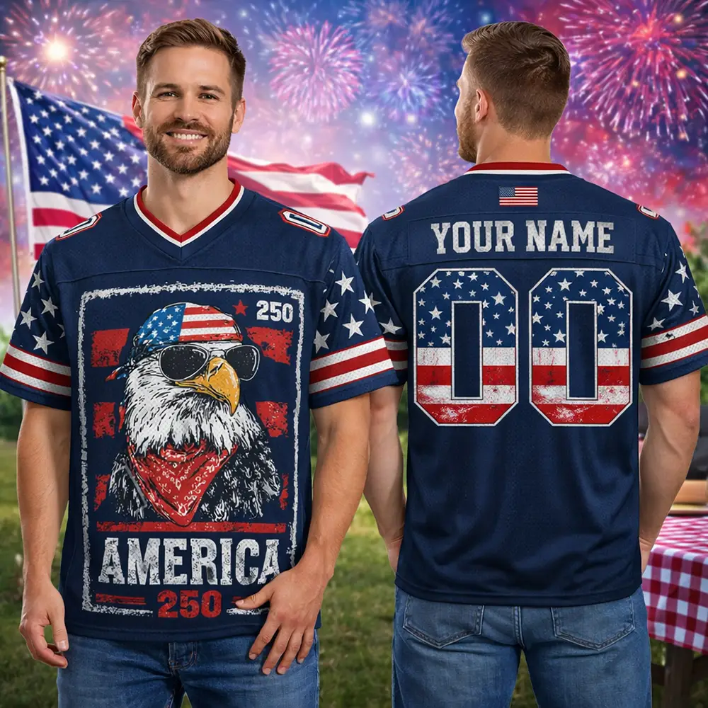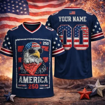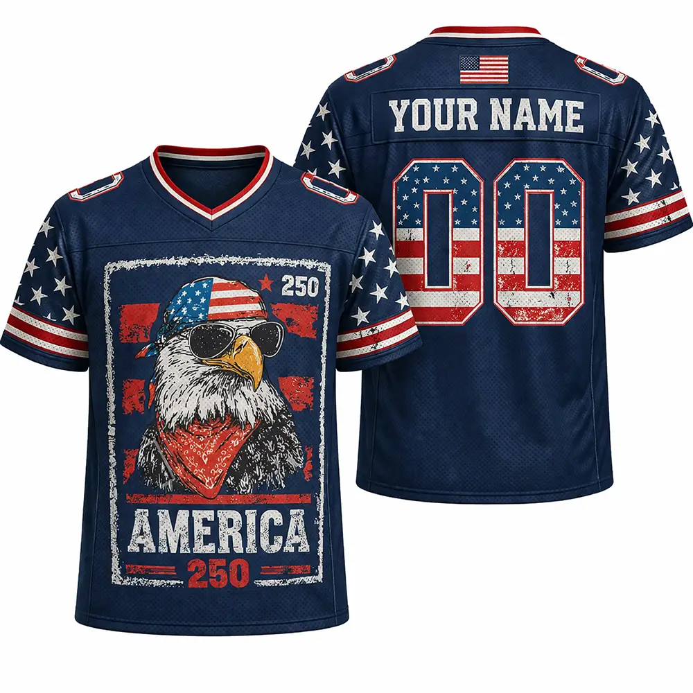 The spirit of 1776 lives on in this USA 250th Anniversary Football Jersey 1776 2026 America Emblem, created for those who want to mark this important celebration in standout style. With its bold emblem design and classic football-inspired shape, this jersey fits right in at patriotic parties, fireworks nights, and holiday weekends. It is a memorable piece for showing love for country with a modern sporty edge.