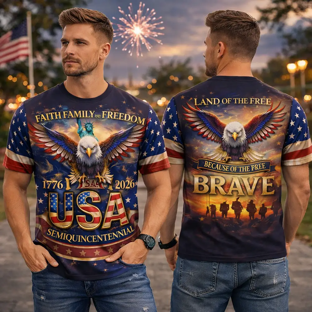 USA 250th Anniversary Patriotic Faith Family Freedom T-Shirt