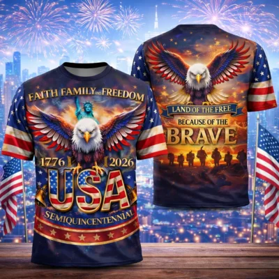 Show your love for country, family, and freedom with the USA 250th Anniversary Patriotic Faith Family Freedom T-Shirt. With a message inspired by timeless American values, this shirt offers a strong yet thoughtful way to celebrate the nation’s 250-year legacy. It is a standout pick for 4th of July celebrations, family gatherings, and patriotic everyday style.