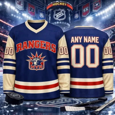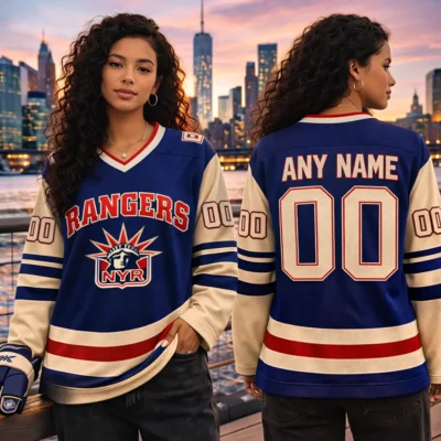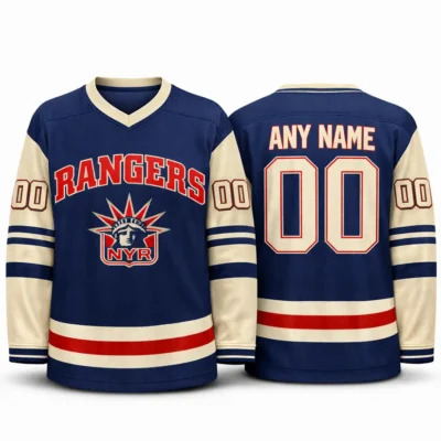 Celebrate iconic hockey style with this Vintage 1990s New York Rangers Lady Liberty NHL Hockey Jersey. Featuring the legendary Lady Liberty logo, retro-inspired colors, and customizable name and number on the back, this jersey is perfect for fans who love classic Rangers history. It is a standout choice for game day, casual wear, fan collections, or as a unique gift for any New York hockey supporter.