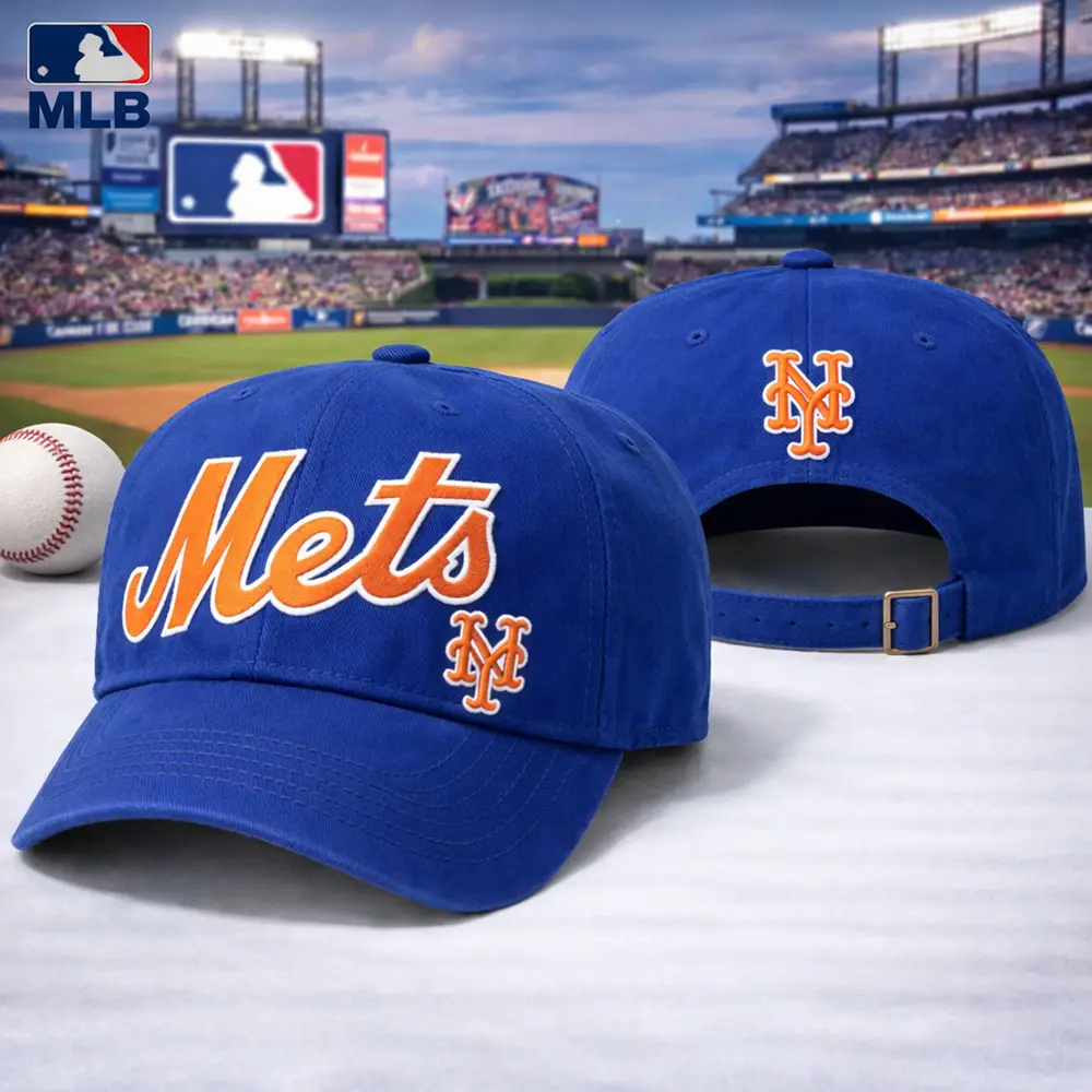 Vintage New York Mets NY MLB Dad Hat features a bold royal blue colorway with oversized Mets script embroidery, classic NY logo accents, and an adjustable back strap for a secure and comfortable fit. This timeless baseball cap is perfect for game day, casual everyday outfits, outdoor activities, or as a great gift for New York Mets fans.