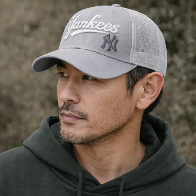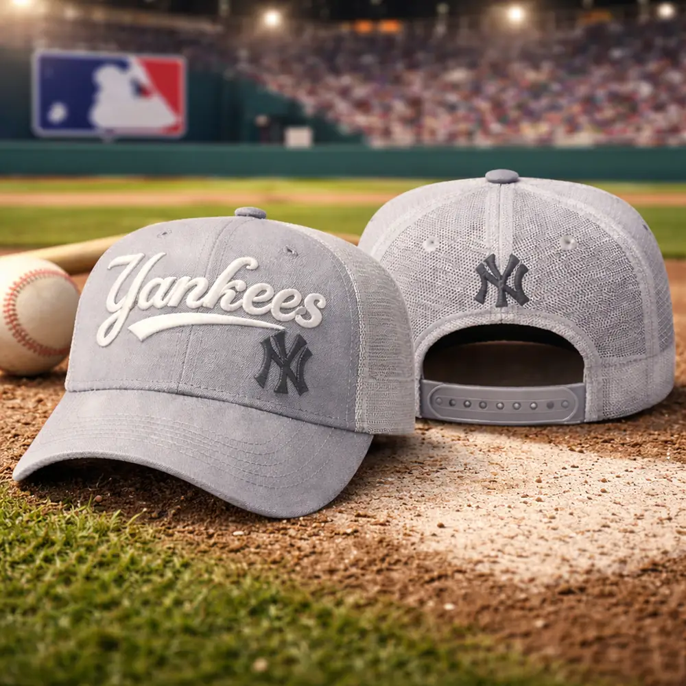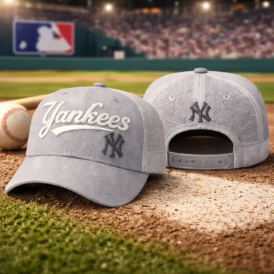 Complete your everyday look with this vintage-inspired New York Yankees gray trucker hat. Designed with raised Yankees script embroidery on the front and subtle NY logo details, this cap delivers a clean retro baseball style that stands out without being too bold. The soft gray colorway gives it a versatile look that pairs easily with casual outfits, sportswear, and streetwear. Built with breathable mesh back panels and an adjustable snapback closure, it offers lasting comfort and a flexible fit for daily wear. Whether you are heading out for a casual day, traveling, attending a game, or looking for a stylish gift for a Yankees fan, this hat is a practical and timeless choice.