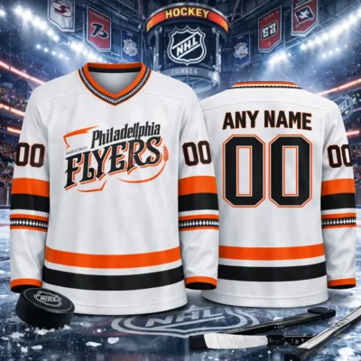Bring classic hockey energy to your wardrobe with this Philadelphia Flyers NHL hockey jersey. Featuring personalized name and number options, a timeless team-inspired design, and a comfortable unisex fit, this jersey is ideal for cheering from the stands, watching the game with friends, or celebrating your love for Philadelphia hockey in style.